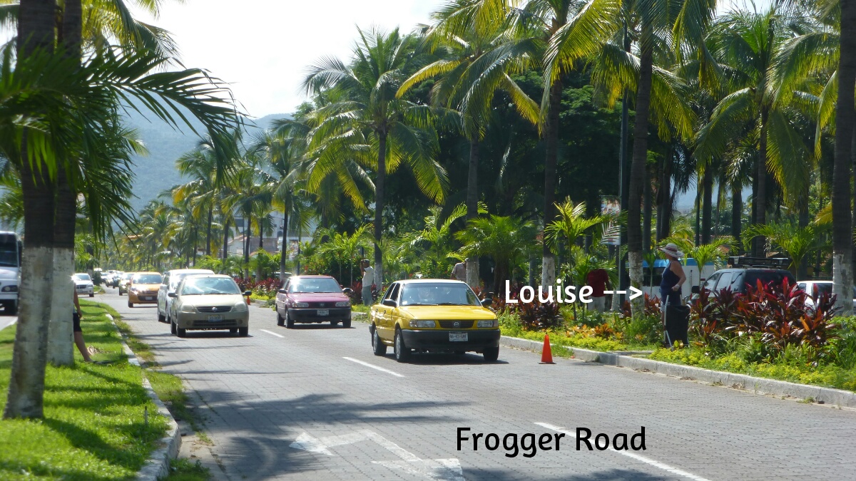 The next time you present yourself at a crosswalk, say, in Spain (where they always stop for pedestrians) or the US (where they usually do), remember Frogger Road, the Mexican buses with no brakes, and your friends in Puerto Vallarta who take their lives in their hands every time they need a quart of Chunky Monkey. Hop, hop … squish!